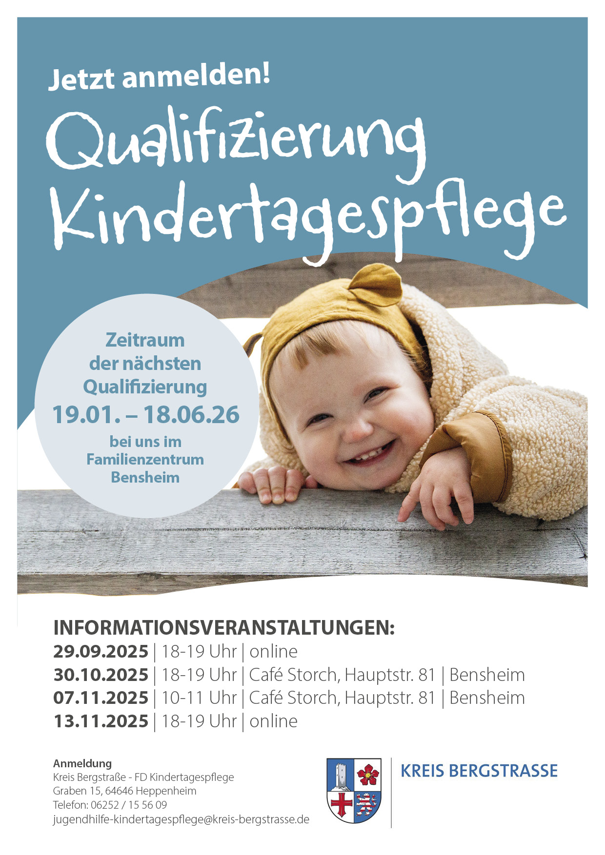 - Vermittlung von Kindertagespflegepersonen aus: Heppenheim, Odenwald (Abtsteinach, Birkenau, Fürth, Gorxheimertal, Grasellenbach, Lindenfels, Mörlenbach, Rimbach und Wald-Michelbach). Neckartal (Hirschhorn und Neckarsteinach), Viernheim